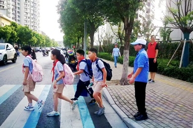 家人们认真地维持秩序、指挥交通。一句句真情的疏导,传递着安全的心声!
