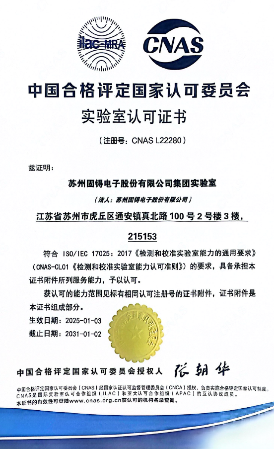 Ø | 苏州固锝电子股份有限公司集团实验室拥有国内一流的功率分立器件及特色IC产品的可靠性及失效分析实验设施,设备,实验室项目参考JEDEC相关标准。 |
