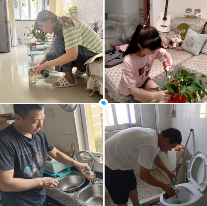 酵素已潜移默化融入我们的生活。支部家人用自己制作的酵素清洁卫生间,疏通下水道,既干净又环保。擦玻璃、地板时加入酵素也会有意想不到的效果。
