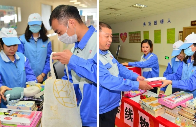 10月17日中午, 在公司总部三楼幸福餐厅,仁义、俭约、谦德支部联合开展“延续物命·让爱传递”捐赠活动,让闲置物品焕发新的生命。