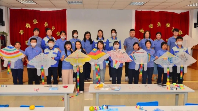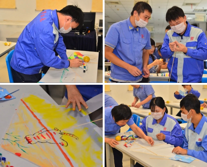 秋分是放风筝的好时候。家人们早早准备好相关材料,大家两两一组,你来剪贴我来画,欢乐的气息在空气中尽情流淌。不多时,一只只图案生动、色彩亮丽的风筝就做好了。
