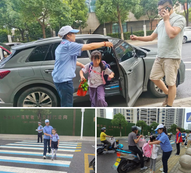 为乘坐汽车的学生开车门,护送他们过马路,直至安全送进校门……在志愿者的帮助下,家长们省心又省力,汽车即停即走,道路有序通行。一个多小时的护岗,学生陆续安全进入校园。