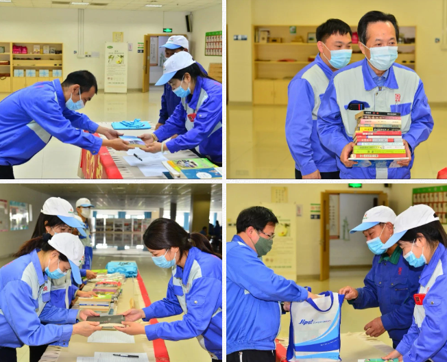 志愿者早已提前做好宣导,在现场做好了充足准备。瞧,家人们捧着沉甸甸的书籍走来。有的家人捐书的同时还不忘兴致勃勃地介绍所捐赠书籍的由来、内容及特点。