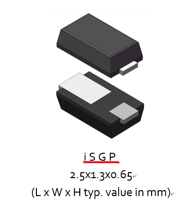 随着消费电子产品市场规模持续增长,并且往尺寸小型化方向发展,对传统的分立器件小型化要求越来越高。苏州固锝推出1A,20-60V 肖特基二极管,采用扁平化平脚iSGP封装,适用于手持设备(Handheld devices),通信(Telecommunication)和汽车电子(Automotive application)等应用。iSGP封装满足了更高能量效率、更低的热阻和更小更薄尺寸的要求。该系列产品采用无卤设计,同时符合车规级(AEC-Q101)产品要求。