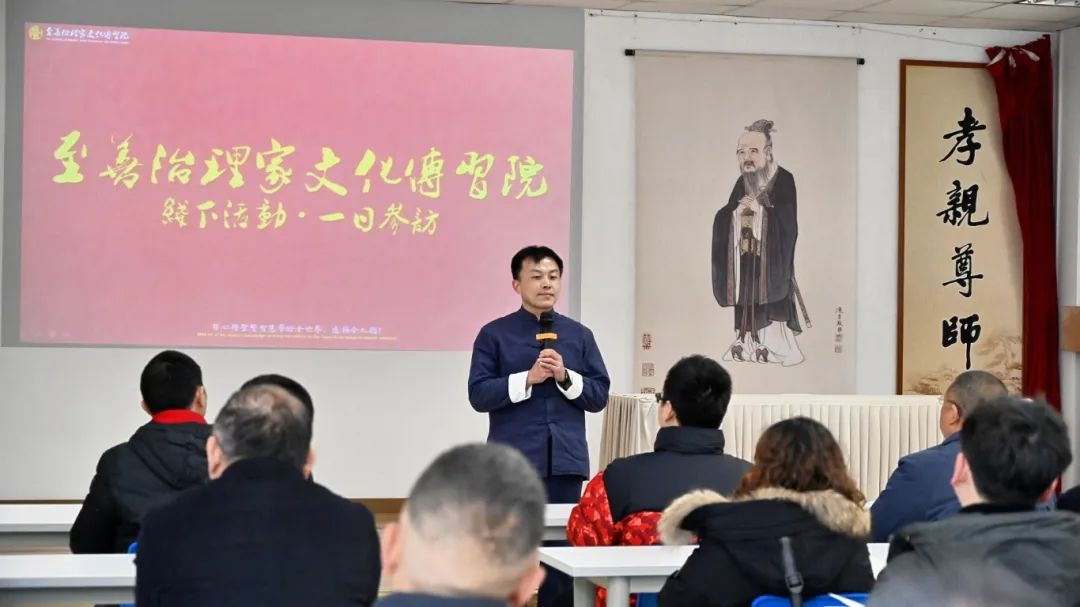 向谁学习?杨萍院长认为,学习有两个方向:一是底层的根本——向日用生活,眼前的人事物学习;二是顶层的方向——谁最幸福,谁最智慧,就向谁学,因此要向古圣先贤、经典学习,因为他们更懂得规律。为了帮助更多人能系统化学习“家文化”、圣贤文化,杨萍院长向大家简单介绍了至善治理传习院正在研发的全新课程及线上学习平台。