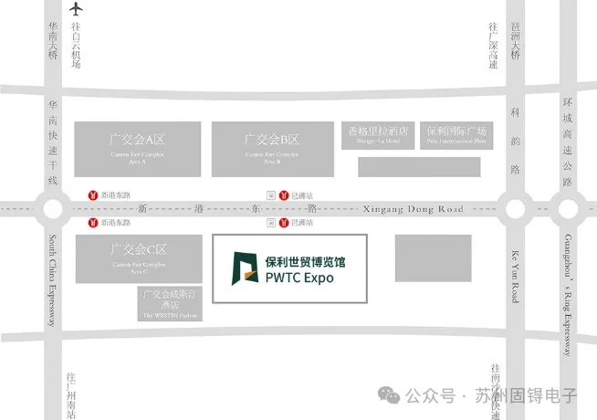 保利世贸博览馆坐落于广州海珠区琶洲会展商圈核心地带。地铁8号线可直达展厅入口,其“琶洲站”与博览馆无缝接驳。