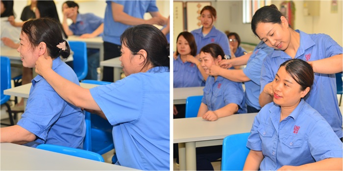 公司总部道德讲堂内,老师一边通过视频案例,让家人们了解到,用原始点按摩穴位能改善睡眠质量,缓解头痛等症状,一边演示具体步骤,让大家分组练习,相互交流、汲取经验。家人们用心学习,期待用“指尖的力量”在公司帮助同事舒缓一天的疲惫;回家孝顺、体贴父母的身心,将家文化的“健康促进”理念用心践行。