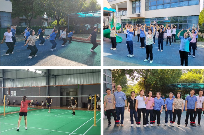 迈开双腿,律动双臂,用平甩功甩掉烦恼,愉悦身心;舒展腰身,活动关节,家人们的心灵在太极舞的一招一式间被洗涤,逐渐寻到内心的宁静;来一场你来我往的羽毛球,在较量中体验到运动带来的快乐;在两人三足的活动中培养团队默契,每一次跌倒,每一次爬起,都让彼此的心更加紧密。