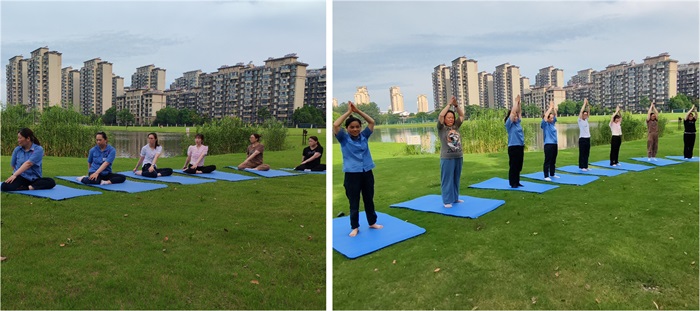 蓝天白云下,家人们来到户外,进入宁静的瑜伽世界,跟随音乐闭上双眼,放松肩颈,缓解了一天的疲劳。家人们开心地说道:“这是我们第一次练瑜伽,看似简单的动作却不容易,全程的跟练让人酣畅淋漓,这次体验让身心都得到了放松。”