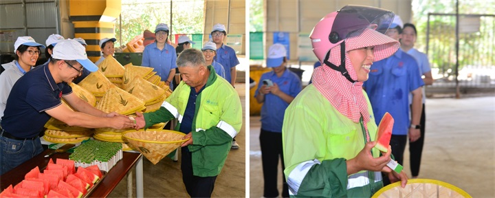 家人们在发放物资的过程中,嘱咐叔叔阿姨在高温天气下做好防暑降温工作,注意安全。环卫工人们十分欢喜,表示感激,感谢固锝家人每年如期而至的关心。