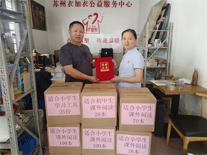 通过苏州衣加衣公益服务中心,爱心人士载满祝福与期盼,将书籍送到需要的孩子们手中。