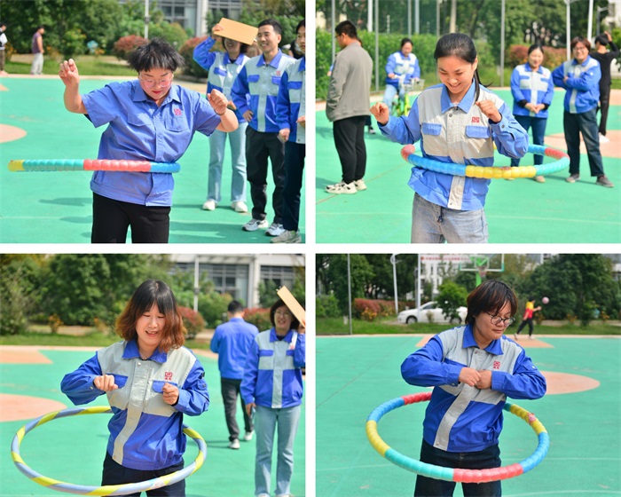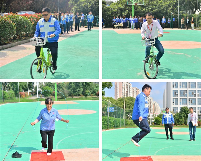 本次趣味运动会共设置了“指压板跳绳”、“呼啦圈”、“自行车慢骑”、“两人三足”四个项目,集趣味性、娱乐性、协作性于一体。