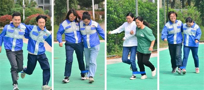 两人三足,不仅是速度的较量,更是对团队的考验。第五组的家人高喊着“一、二、一”的口号,如一人之势飞奔向前,折返后,行走如飞冲向终点,对手虽然前进较缓,但胜在不半途而废,坚持奔赴终点。大家齐心协力,经历默契与协作的考验,沉浸在运动的欢乐氛围中!