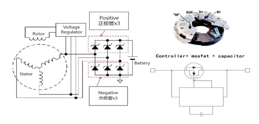 通常来说,汽车整流器组由6个整流二极管组成,但有时候会因为不同的设计需要更多的整流二极管去构成该整流器。