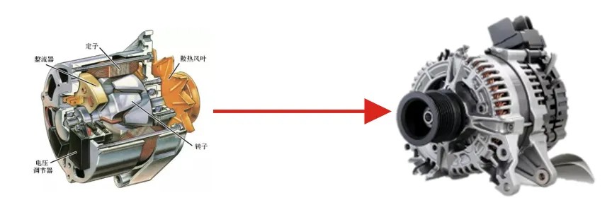发电机是传统燃油汽车用电设备的主要电源。在汽车正常运行期间,发电机向除起动机之外的其它用电设备供电,并向蓄电池充电。也就是说,当发动机正常运转时,汽车上几乎所有的电能都是由发电机提供的;当电量有剩余时,发电机会向电瓶充电。一般汽车发电机的功率 Power:0.8~1.5kW,可以满足大多数情况下汽车的用电需求,当发电量不足时由蓄电池补充。有些小排量的发动机,当发电机发电量较大、负荷较高时,发动机会由于负荷增大而抖动,此时的发动机会自动提高转速来增强发动机动力。