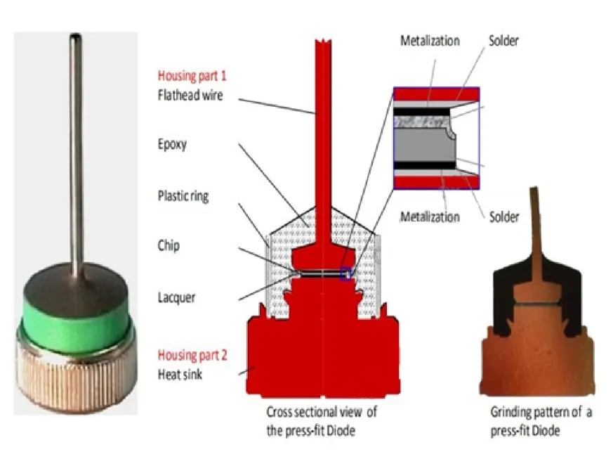 汽车整流器二极管分为正极管和负极管两种。引出电极为正极的称为正极管,引出的电极为负极的称为负极管,其电流Range: 20~100A。