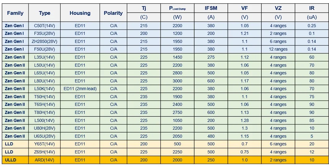 适用于所有二极管类型ZEN,ULLD(ARD Active Rec. Diode),LLD 的外壳设计
