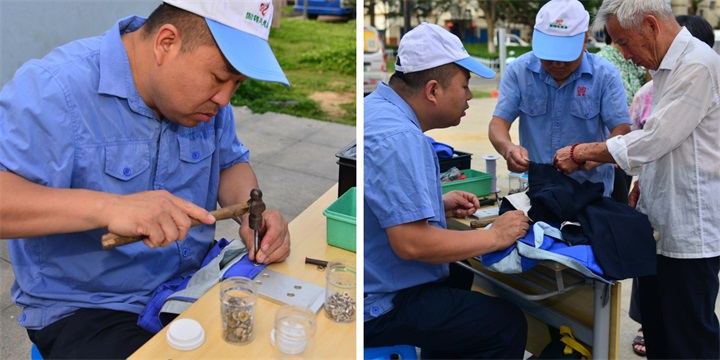 修拉链、钉钮扣、补衣服的区域,是传统技艺与温暖关怀的交汇点。一针每一线,都蕴含着对居民的关怀与尊重;每一次穿梭,都编织着对社区的深情厚谊。