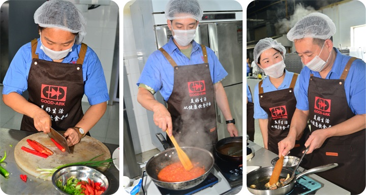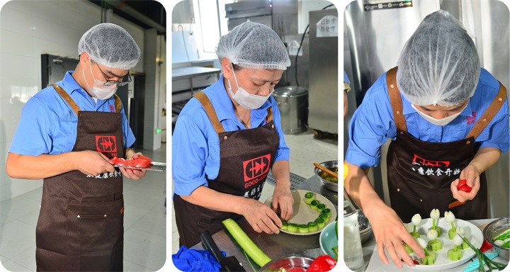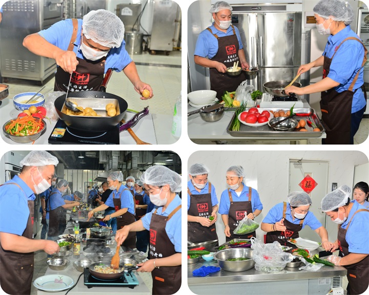 后厨里,新鲜的时蔬、嫩滑的豆腐、菌菇等成为今天的主角。最让人惊喜的是,部分食材来自公司“幸福农场”的有机小菜园——它们带着泥土的芬芳,从田间到餐桌,几乎“零公里运输”,每一口都是自然的馈赠。