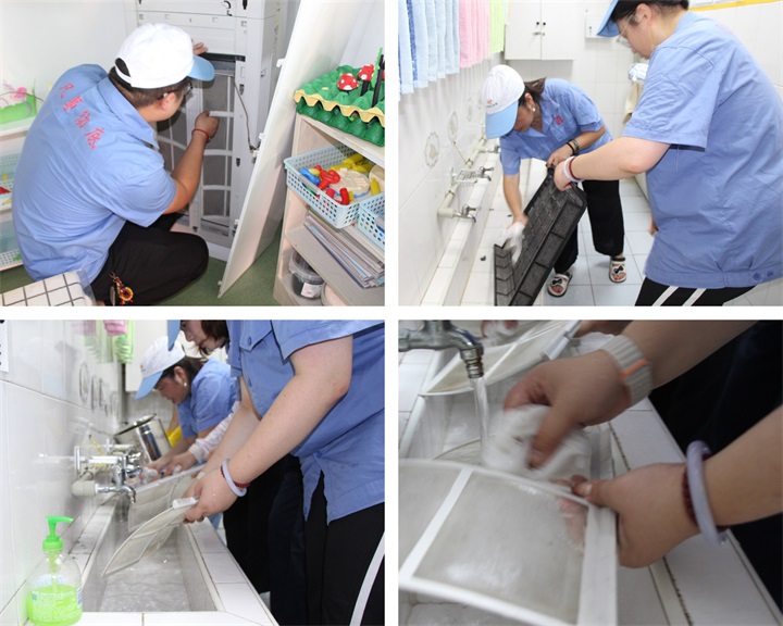 一队志愿者悄悄走进教室,专注检查每一台空调。夏末热浪尚未散去,确保清风常伴童声,是他们最简单也最真诚的心意。
