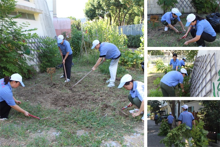 另一队志愿者则走进了校园角落的那片“小田园”——那是孩子们亲近自然、触摸生命的土地。他们弯腰俯身,拔除杂草、翻松土壤,汗水悄悄从额角滑落,笑容却始终明亮。因为他们知道,不久之后,这里将再次发出新芽、结出果实,也长出孩子们对这个世界的惊奇与期待。