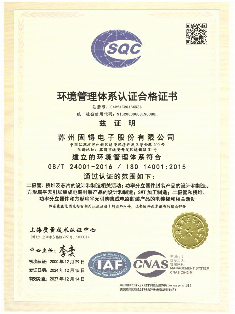 - 04ISO9001证书 - 集成电路厂+通锡路31号+表面电镀科技厂