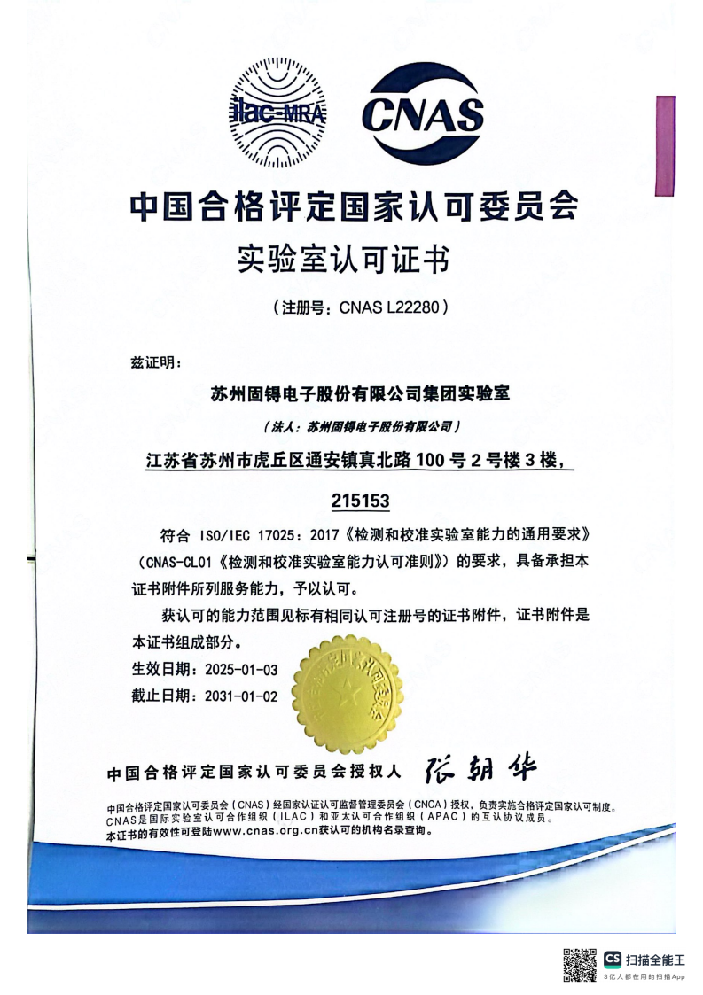 - 12CNAS ISO17025实验室认可证书-真北路100号