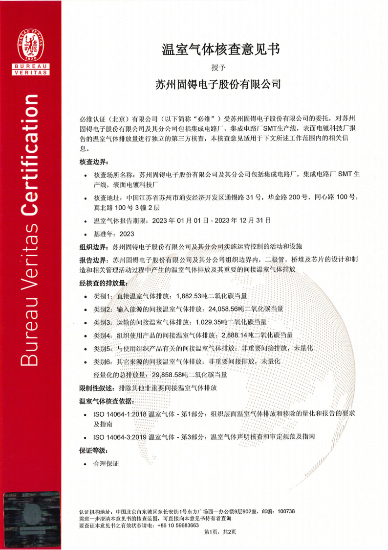 - 13温室气体核查意见书-集成电路厂&表面电镀科技厂&通锡路31号